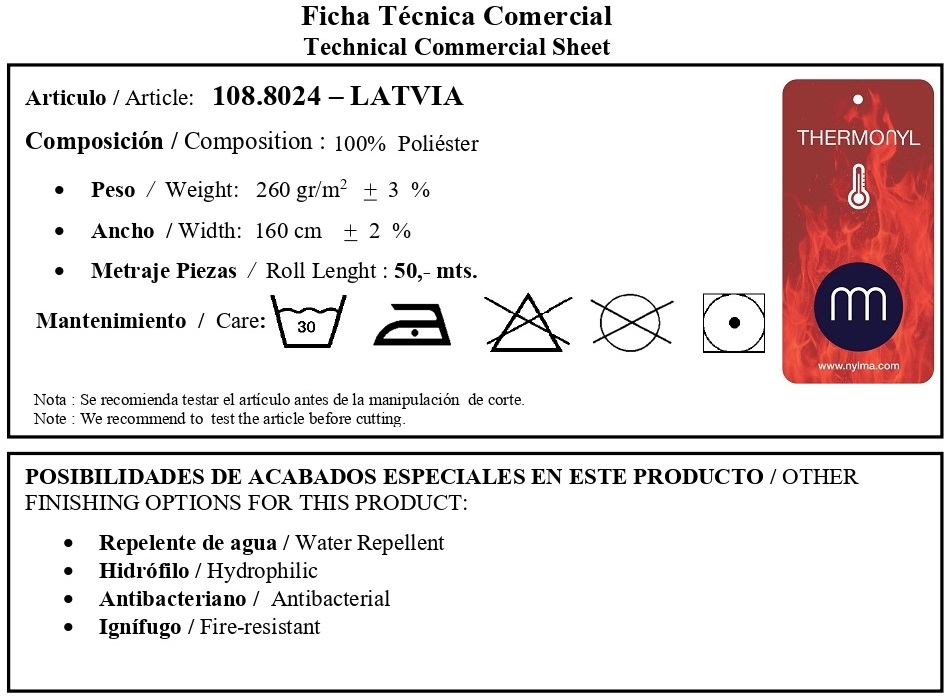 Composition : 100% Polyester Weight: 260 gr/m2 + 3 % Width: 160 cm + 2 % Roll Lenght : 50,- mts.